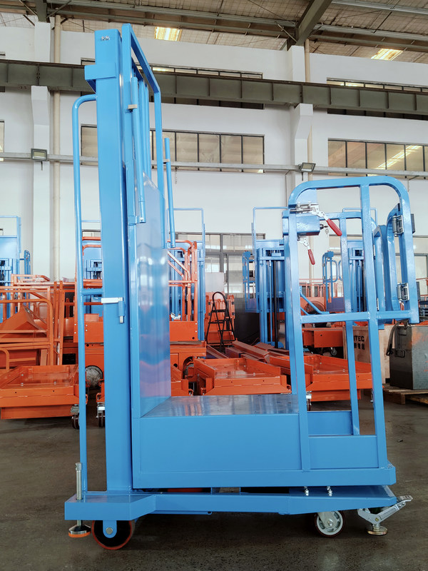 Was die Sicherheitsmerkmale betrifft, so ist der Stockpicker mit mehreren Sicherheitsvorkehrungen ausgestattet, um den Bediener und die in der Nähe arbeitenden Personen zu schützen.und ein verriegelndes Tor, das den Zugang zur Plattform verhindert, wenn sie angehoben wird.